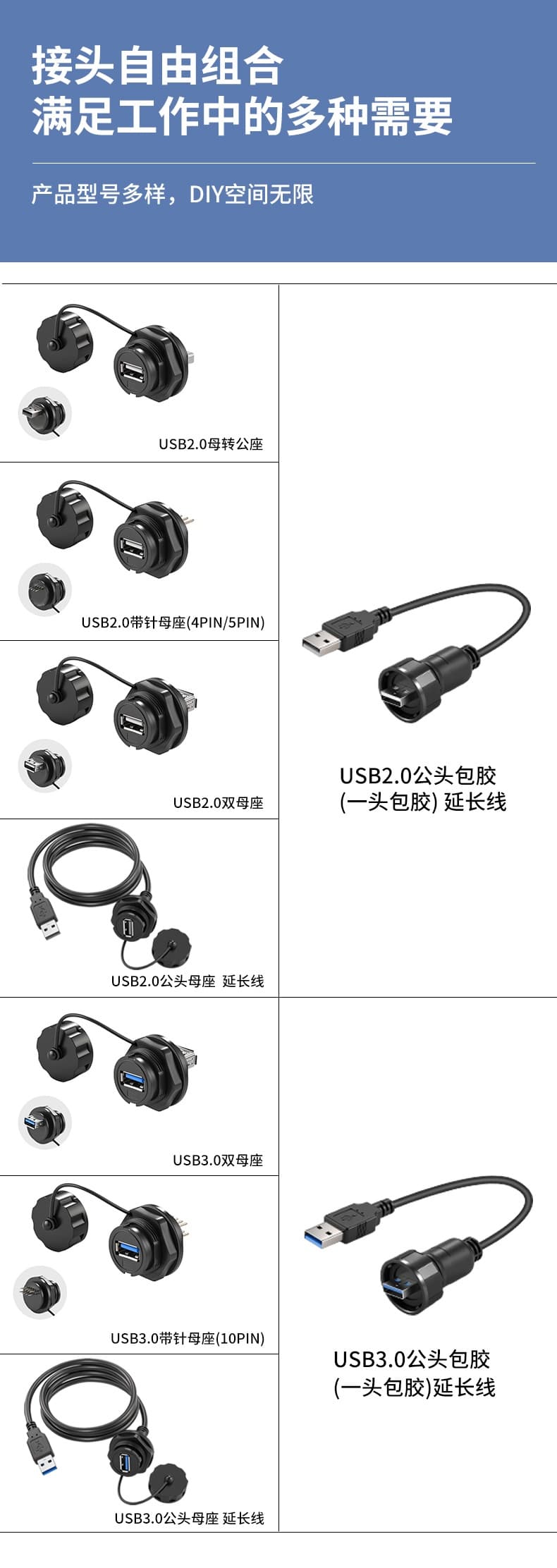 FY25系列产品涵盖多种数据类型,USB2.0/USB3.0,可实现独立母座,母座带线,公母转换对接等多种方式,因即插即用,传输速率快,可扩展性的特点,被广泛应用于计算机、数码相机、扫描仪、通讯设备、自动化控制等。