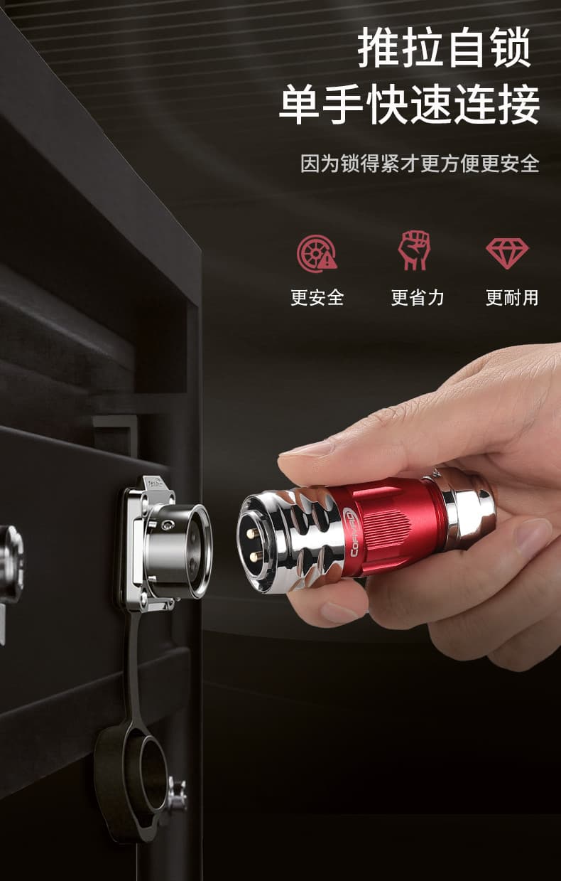 为金属类产品,可满足更为复杂的使用场景。绚丽的颜色增加产品外观的美观性,单手操作简单,连接稳定,可实现IP67等级的防水性能;广泛应用于工业控制,测量和视听设备,通讯行业等领域。
